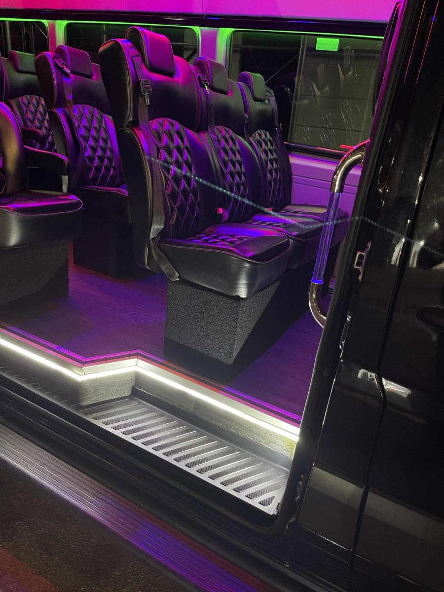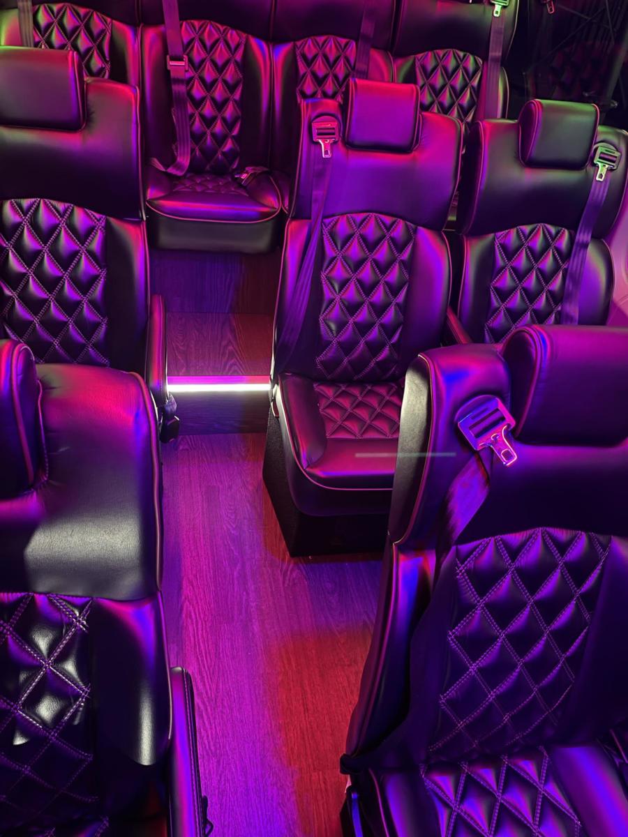 This vehicle was custom built for Falcon Tour Travel. Choose this Sprinter for Wine tours, proms, bachelor or bachelorette parties, or just a sophisticated night out in the city with friends or family.